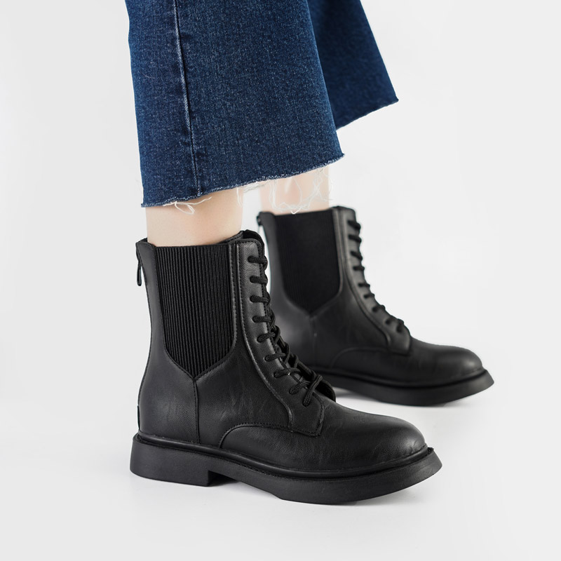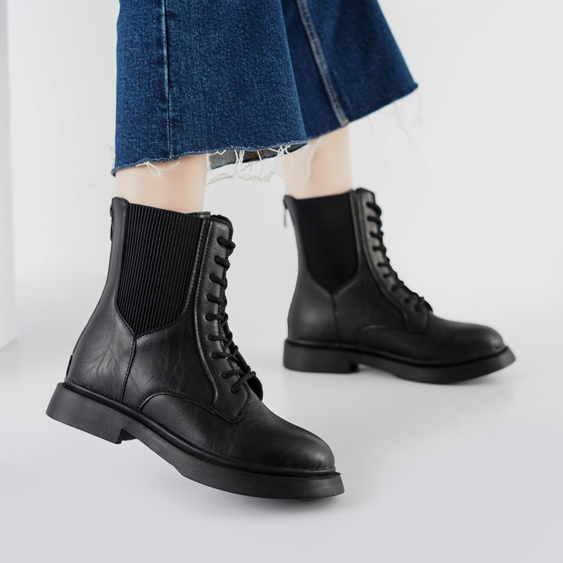 بوت و نیم بوت زنانه و دخترانه مدل بغل کش بندی رنگ مشکی کد M595