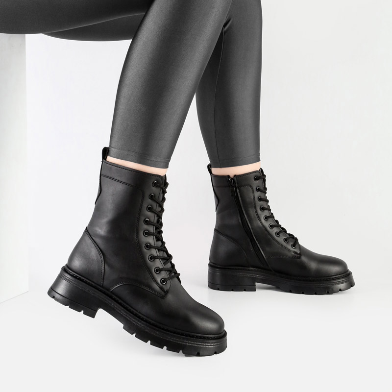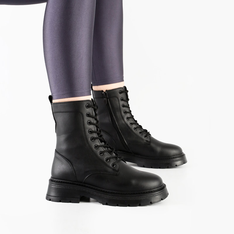 بوت و نیم بوت زنانه و دخترانه مدل بندی بغل زیپ برشکا BERESHKA رنگ مشکی کد A509