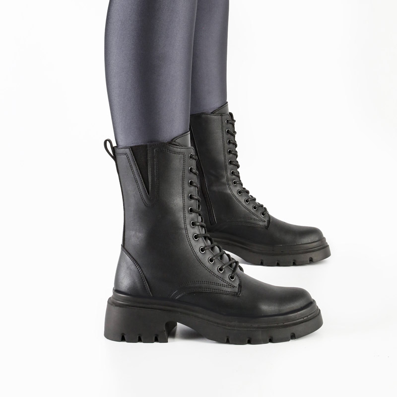 بوت و نیم بوت زنانه و دخترانه مدل بندی بغل زیپ برشکا BERESHKA رنگ مشکی کد A508